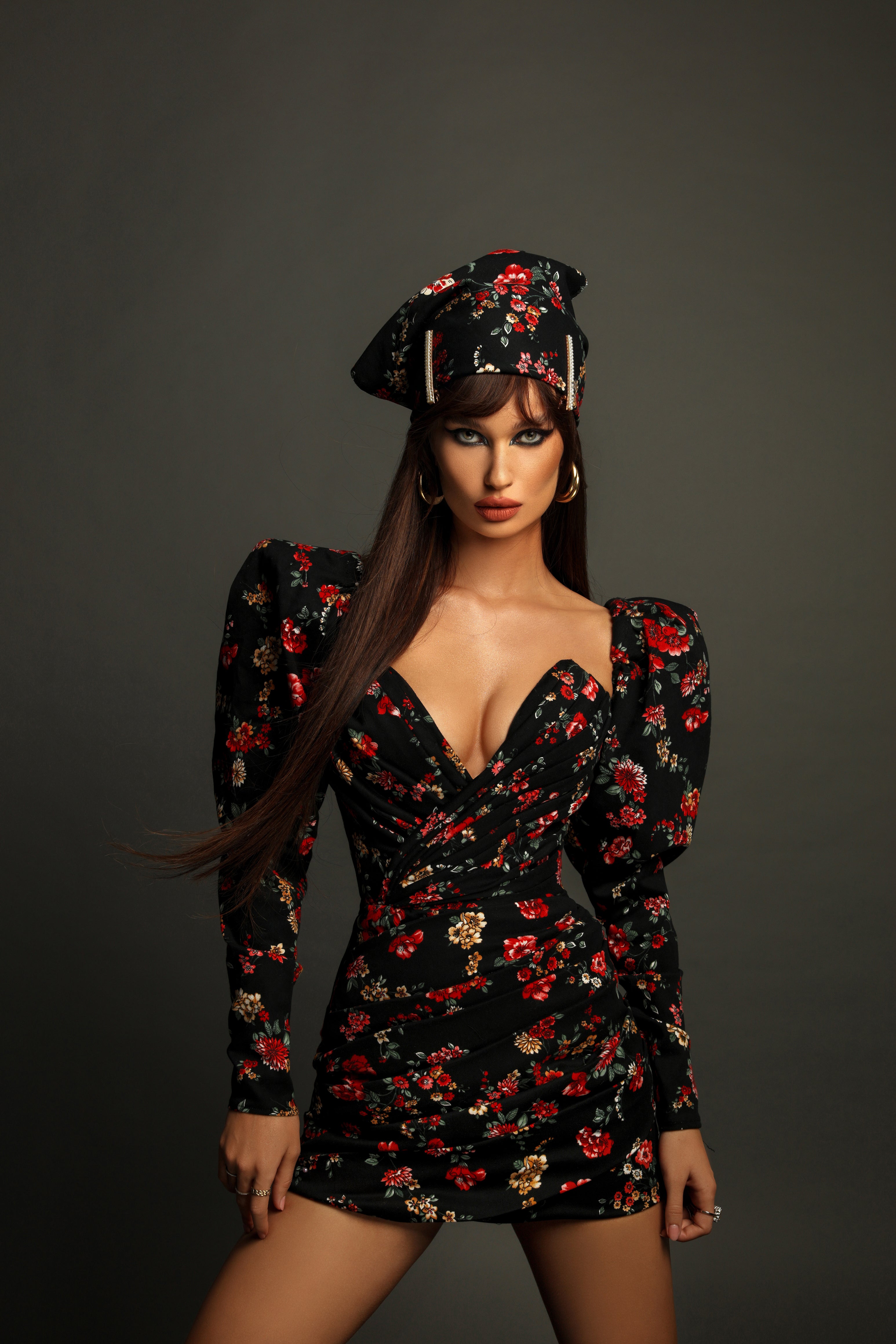 Short floral dress.